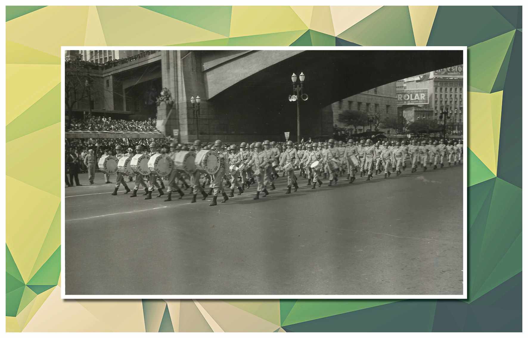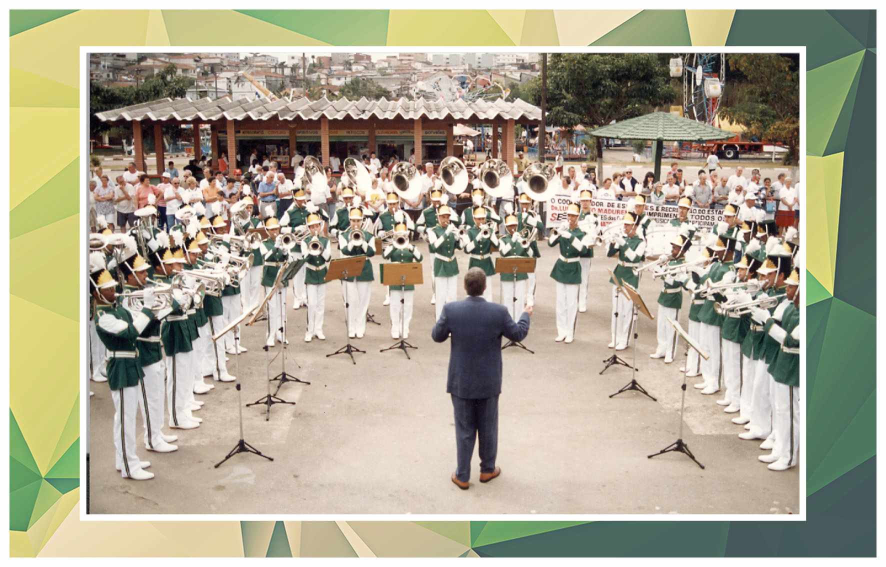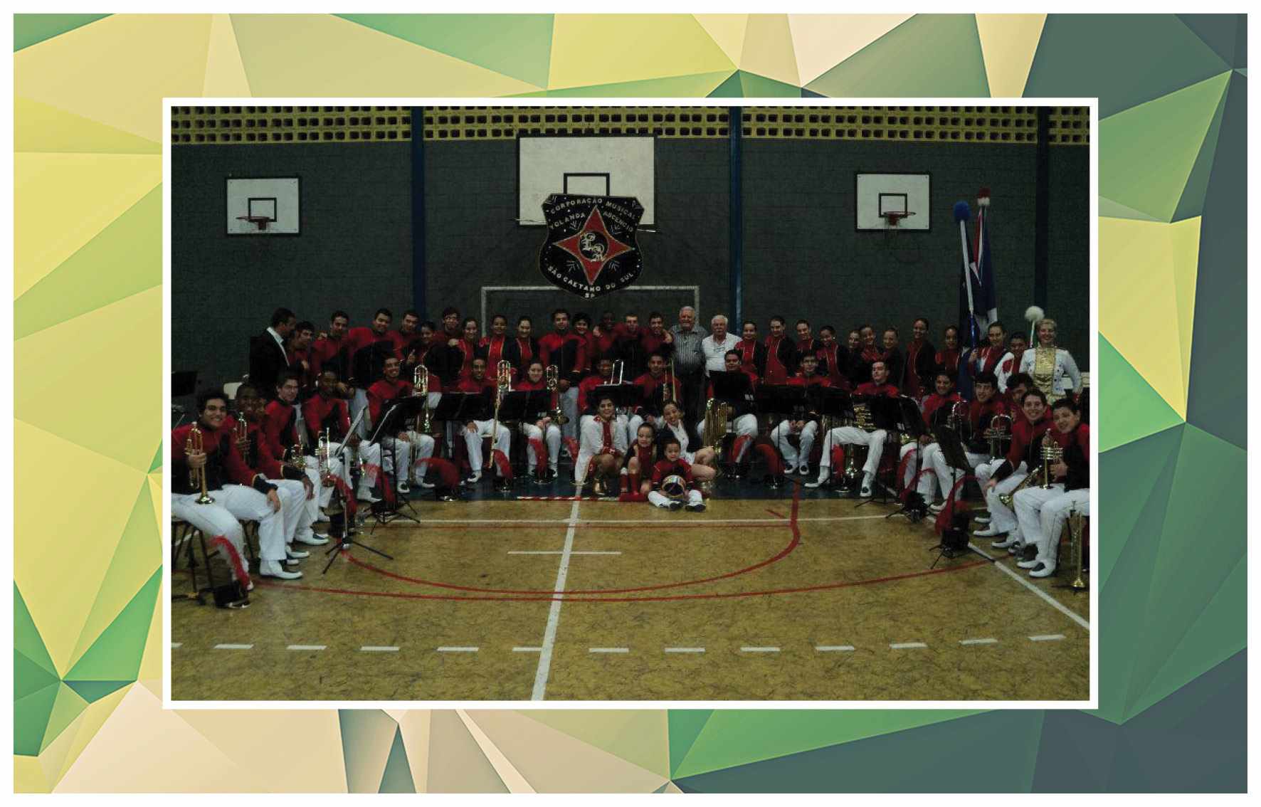 Corporação musical Lyra São Caetano, sob a batuta do maestro Luiz Modena. Vemos os integrantes da banda defronte ao Empório Cuccato, na esquina da Rua João Pessoa e da Avenida Conde Francisco Matarazzo. Foram identificados: Luiz Modena, João Domingos Bombassei, Stoquio Milani, Luiz Bálsamo, Delmestre, Luvigino Neri, Kelo Garbelotto, Sicala, David Cuccato e Américo Terezina. Foto do início da década de 1930