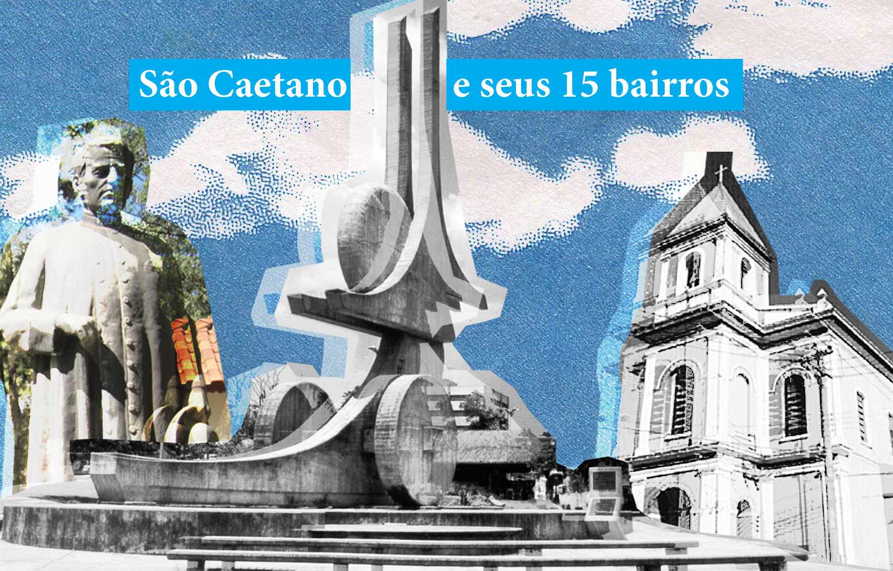 Vista aérea na qual é possível observar algumas referências do Bairro Olímpico | Acervo/Fundação Pró-Memória de São Caetano do Sul | Saiba mais sobre o Bairro Olímpico em www.fpm.org.br/HistoriaBairros/List