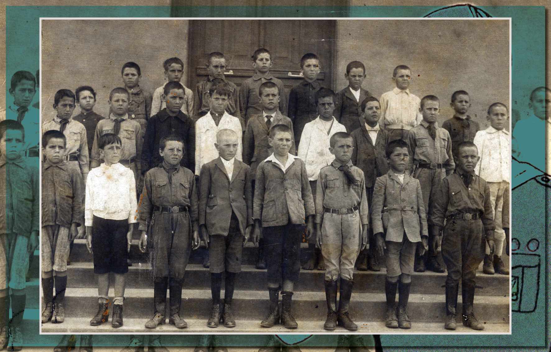 Grupo de Escoteiros do Grupo Escolar Senador Fláquer, em foto tirada nos fundos do estabelecimento escolar, em 1922 - Acervo/Fundação Pró-Memória de São Caetano do Sul
