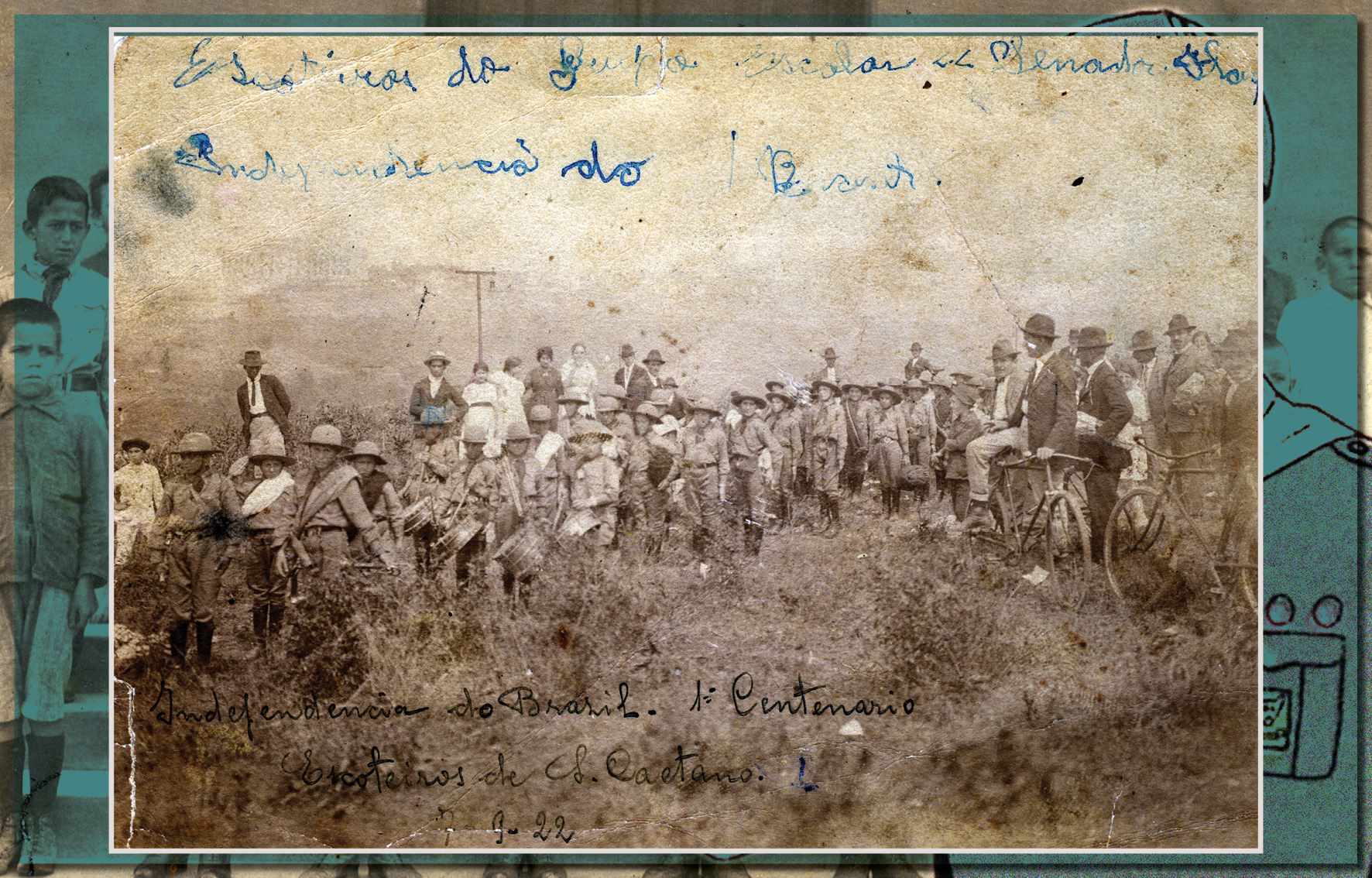 Os escoteiros de São Caetano preparam-se para o desfile de Sete de Setembro, em 1922. Na foto, o grupo está nas proximidades do então Museu do Ipiranga, atual Museu Paulista - Acervo/Fundação Pró-Memória de São Caetano do Sul