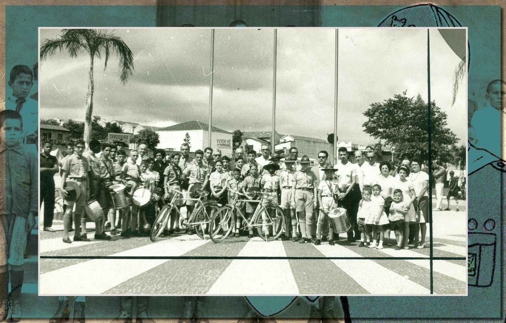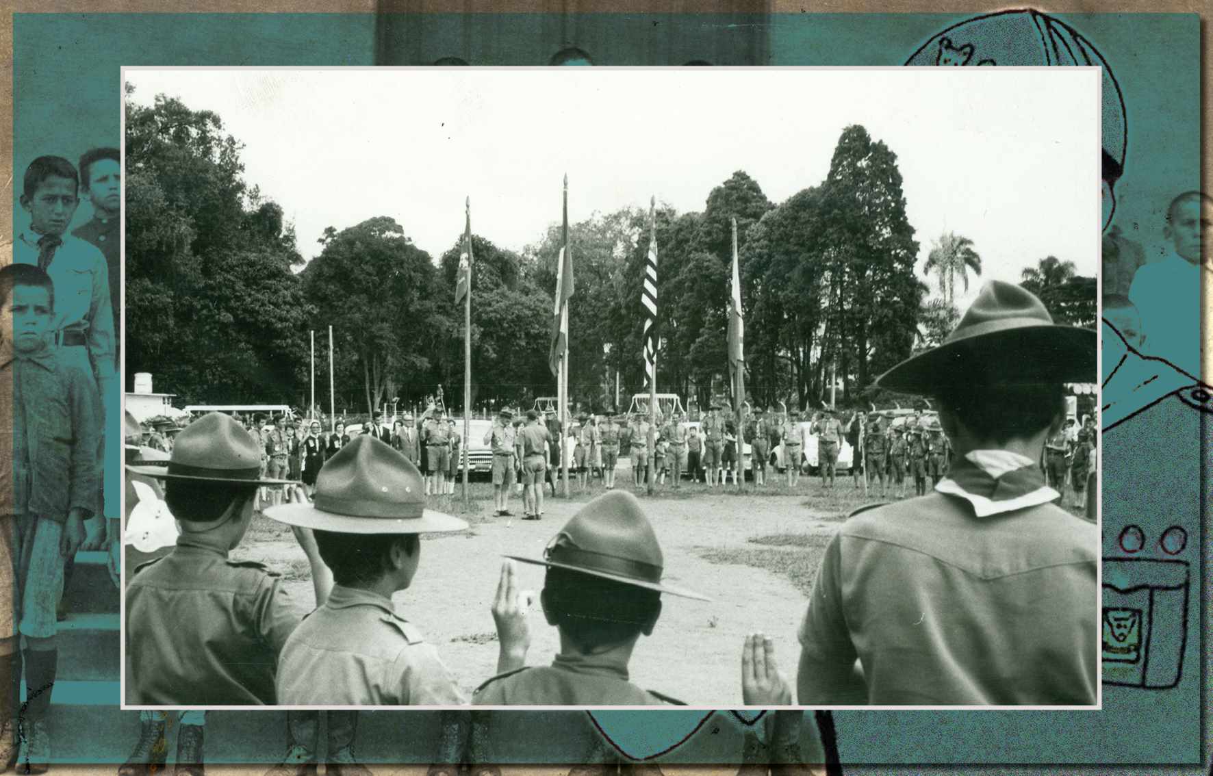 Foto dos escoteiros do Grupo João Ramalho, em 1963, na Praça dos Estudantes, em São Caetano do Sul - Acervo/Fundação Pró-Memória de São Caetano do Sul