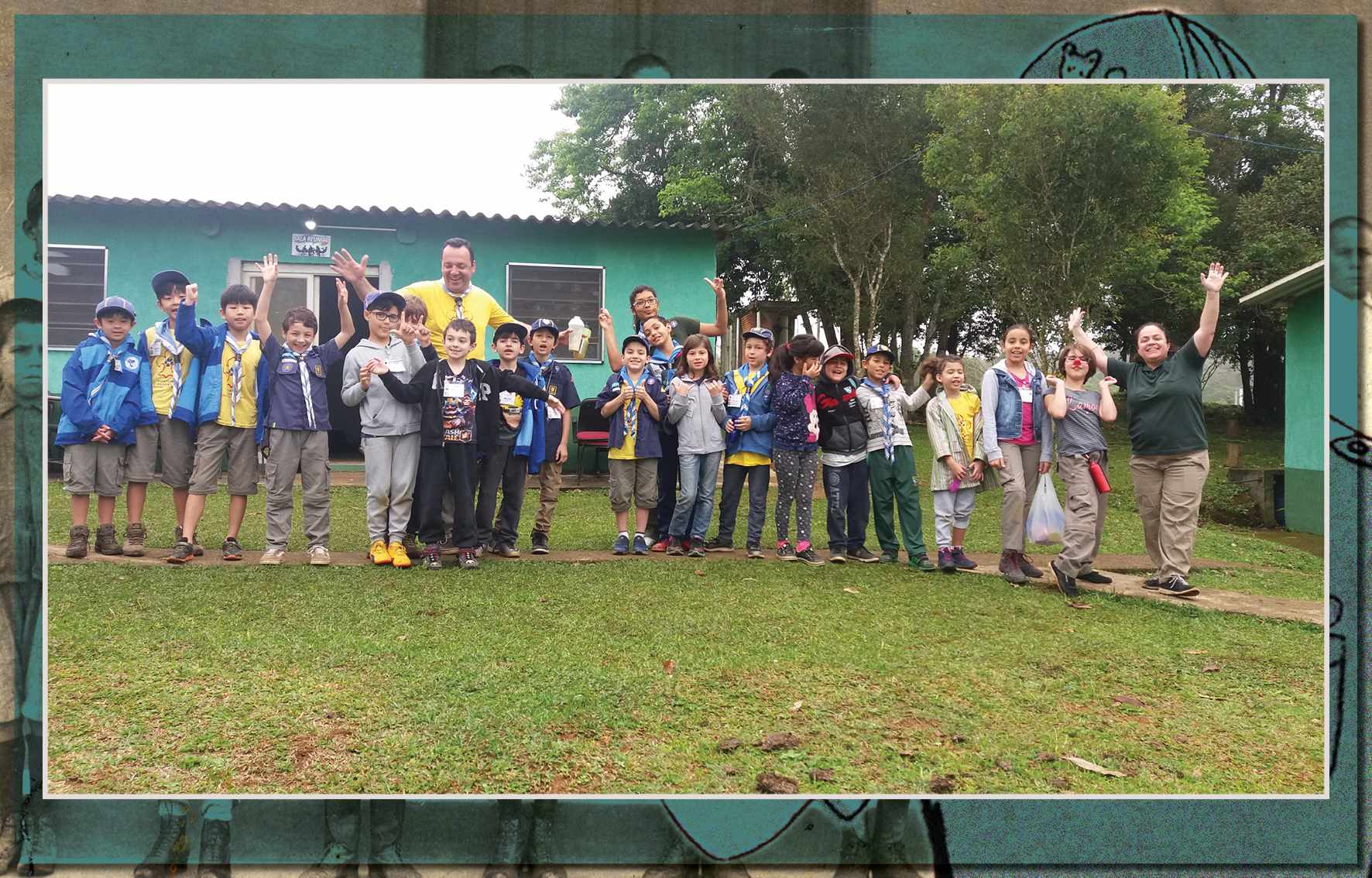 Integrantes do Grupo Escoteiro São Caetano, em foto de 9 de junho de 2007. A partir da esquerda, vemos: chefe Toshio, Gabriel Joia, Patrícia Moura, Patrícia Puccia, Laura, Renan, Jean, Lucas e chefe Sandra - Acervo/Sandra C. Monteiro