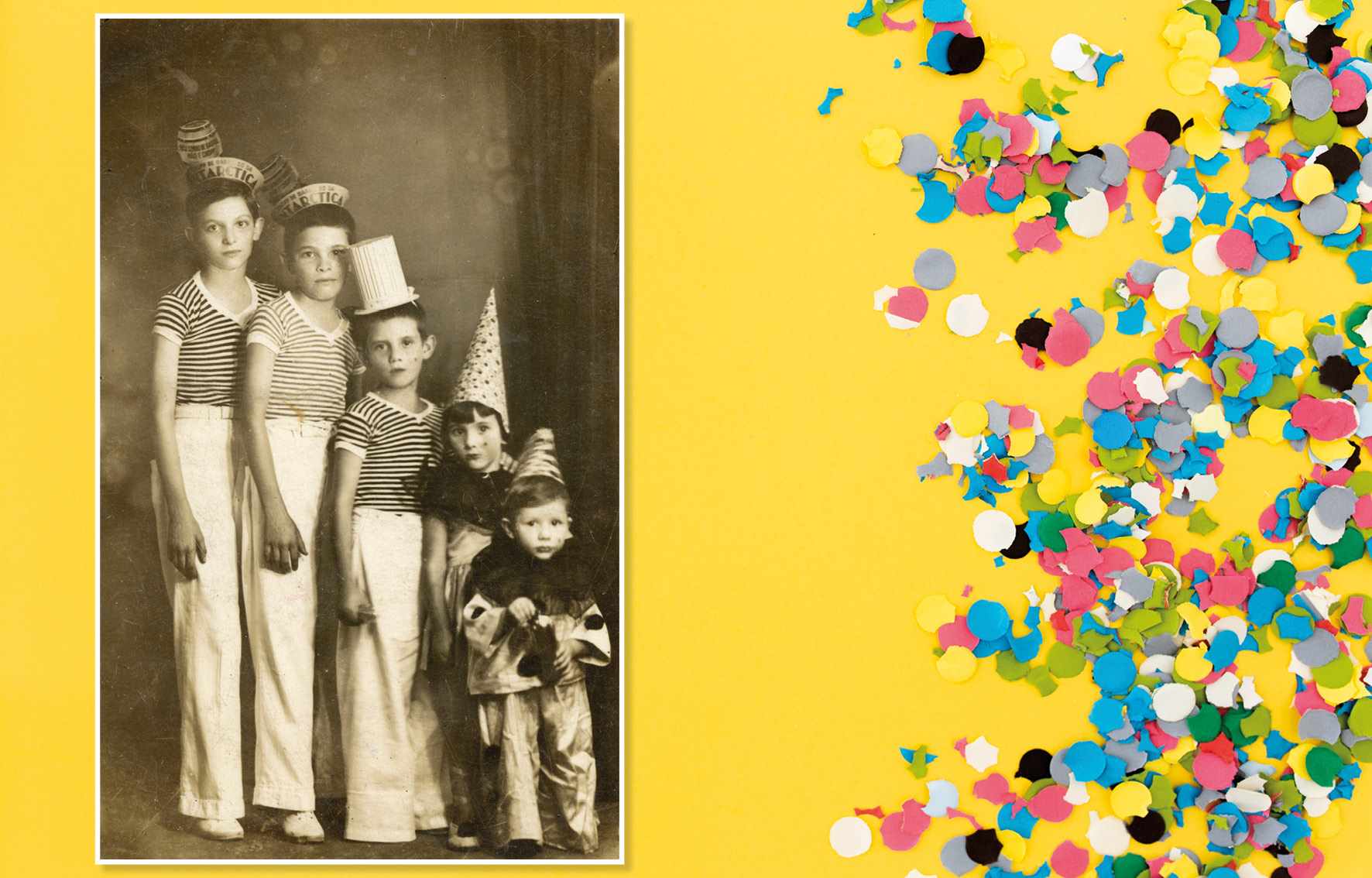 Em 1930, crianças fantasiadas para o carnaval do São Caetano Esporte Clube se apresentavam na passarela. A partir da esquerda, vemos:Antonio Perrella, Nelson Perrella, Lourdes Perrella Rocha Pereira e Laurito Antonio Perrella Acervo/FPMSCS