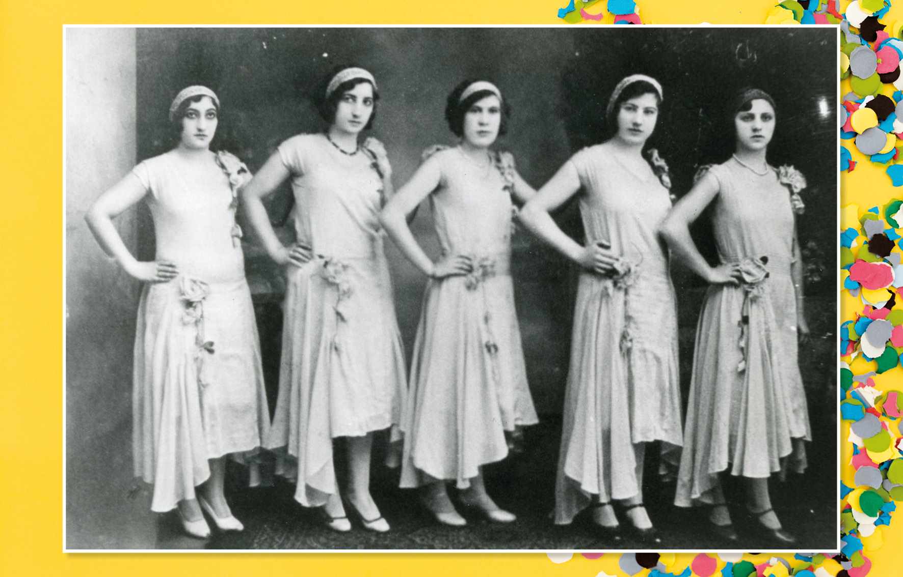 Carnaval do São Caetano Esporte Clube, em 1945. Na foto, cinco moças fantasiadas para o baile, não identificadas Acervo/FPMSCS