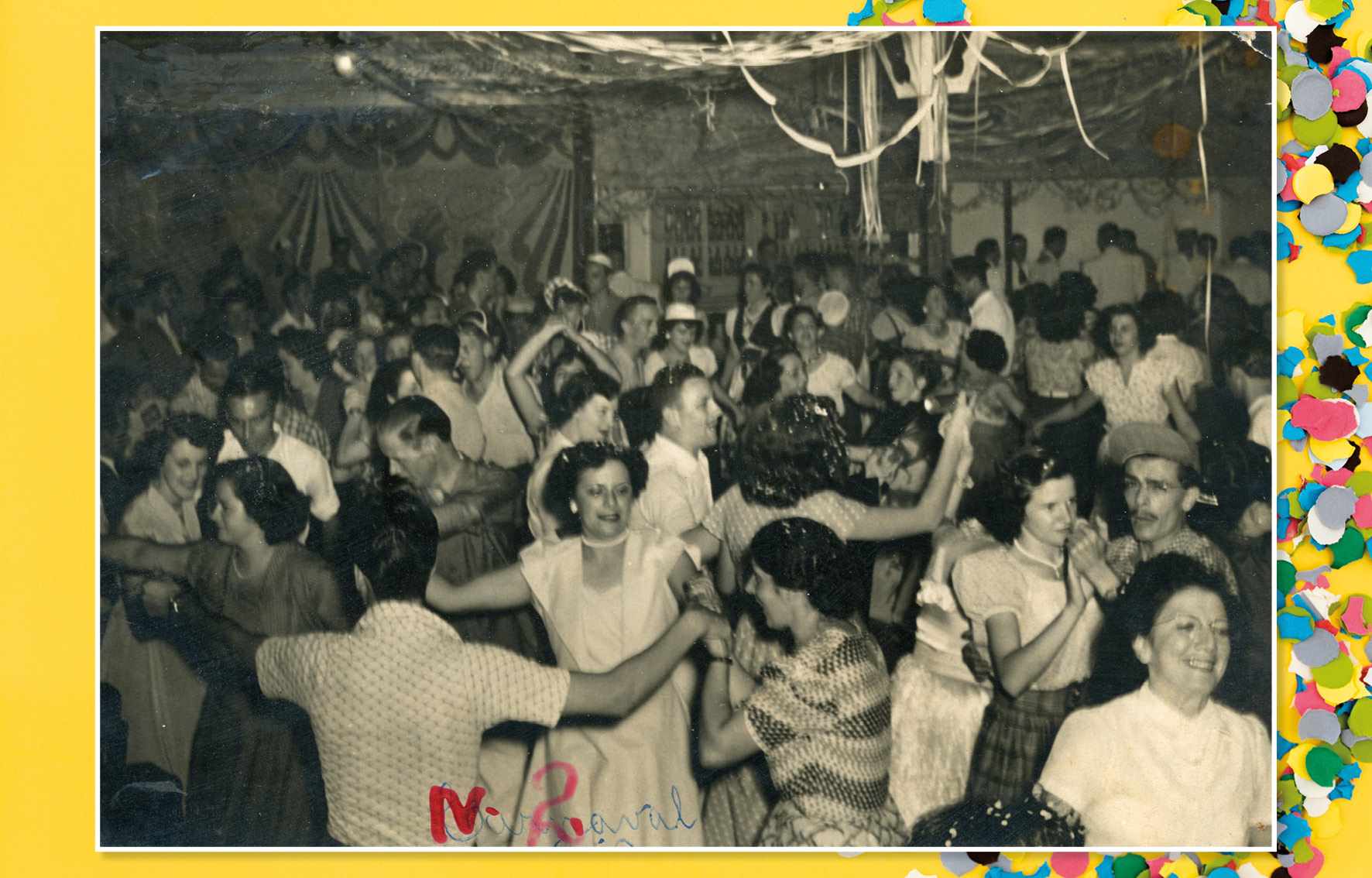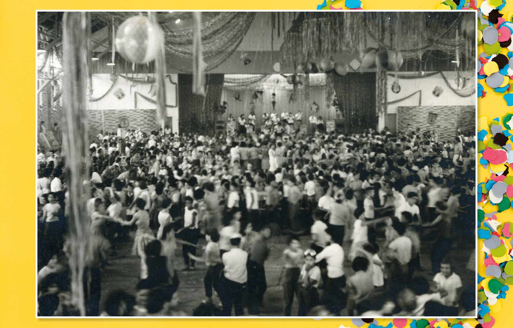 Ao som da música Confete, o cantor Francisco Alves era homenageado na terça-feira de carnaval do Clube Comercial, com a tradicional batalha de confetes. Foto da década de 1960 Acervo/FPMSCS