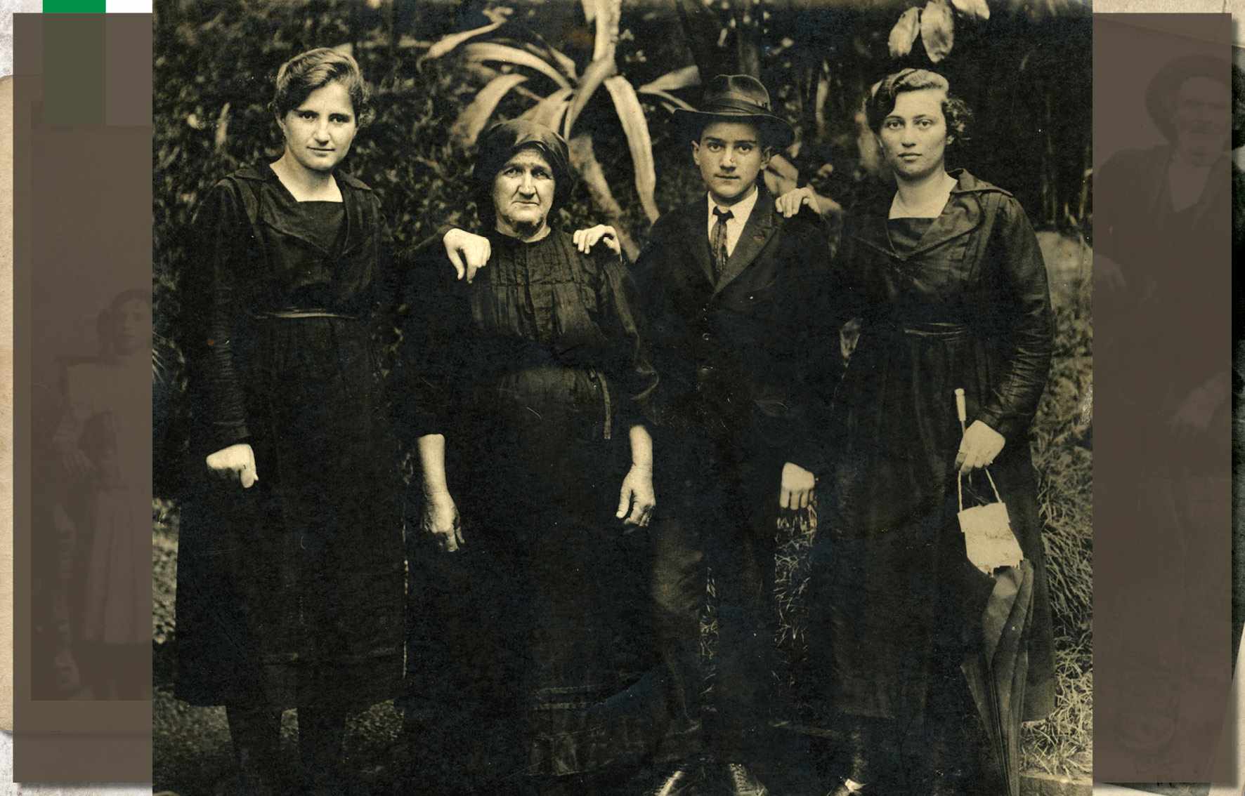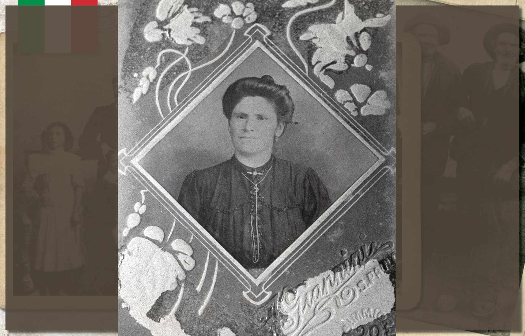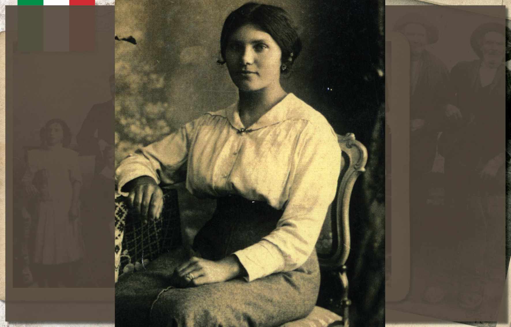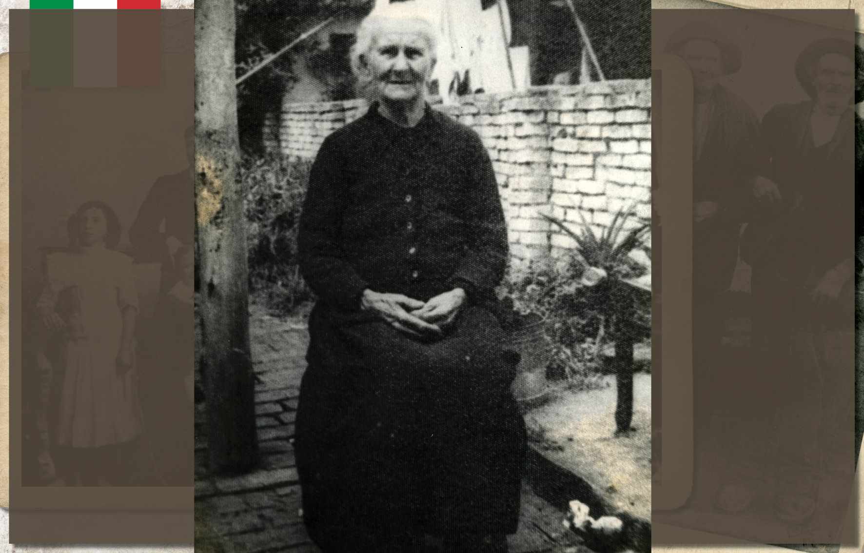 Augusta Dalcin Botteon, em foto de 1908. Nascida no ano de 1882, em São Caetano, era filha de Giacomo Dalcin, colono italiano que aqui chegou em 1877, na primeira leva de imigrantes. Ainda jovem, com seu irmão, transportava lenha em uma carroça. Casou-se com Antônio Botteon, em 1904, com quem teve nove filhos. Faleceu em 1977, aos 95 anos de idade Acervo/FPMSCS