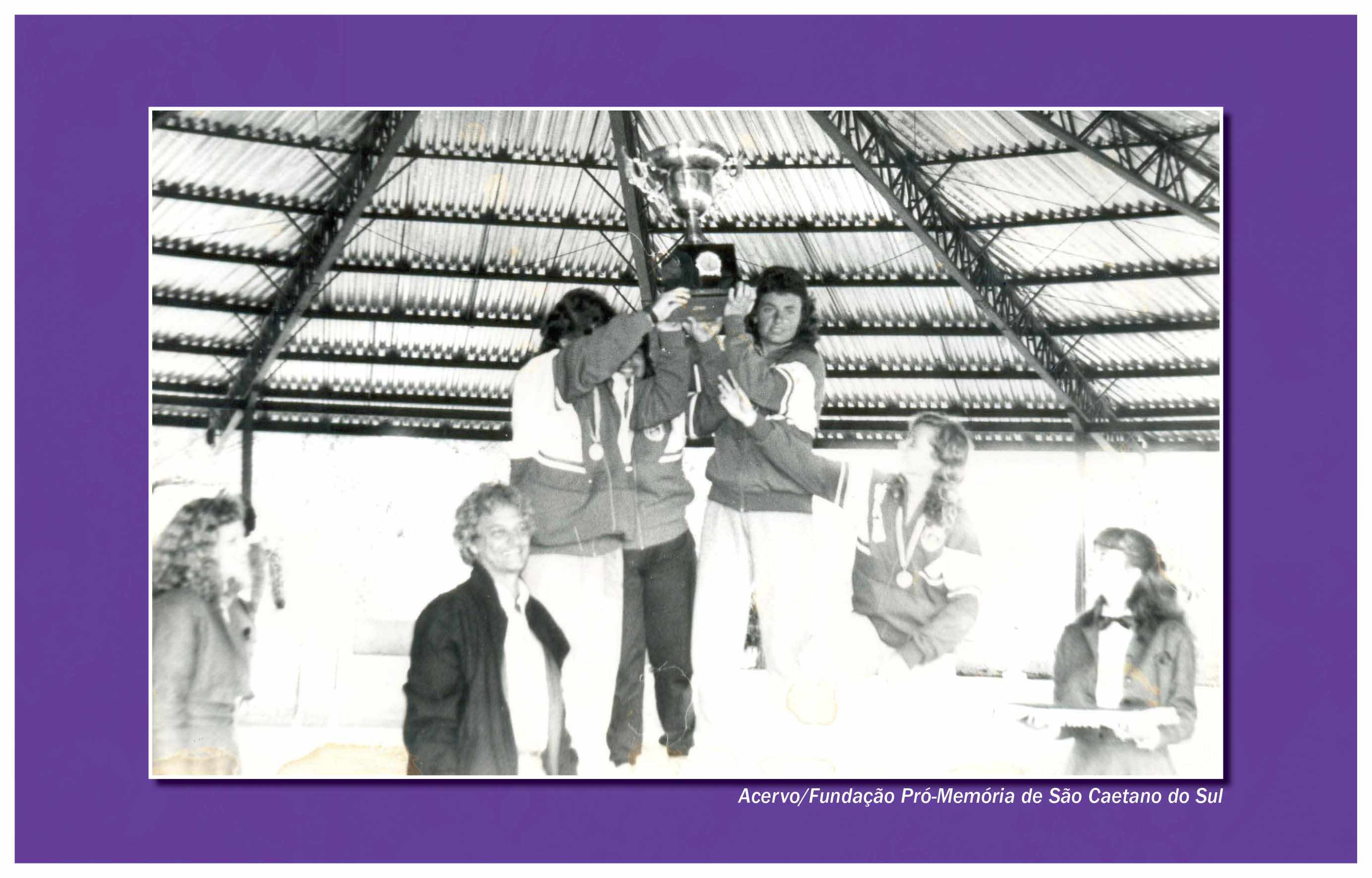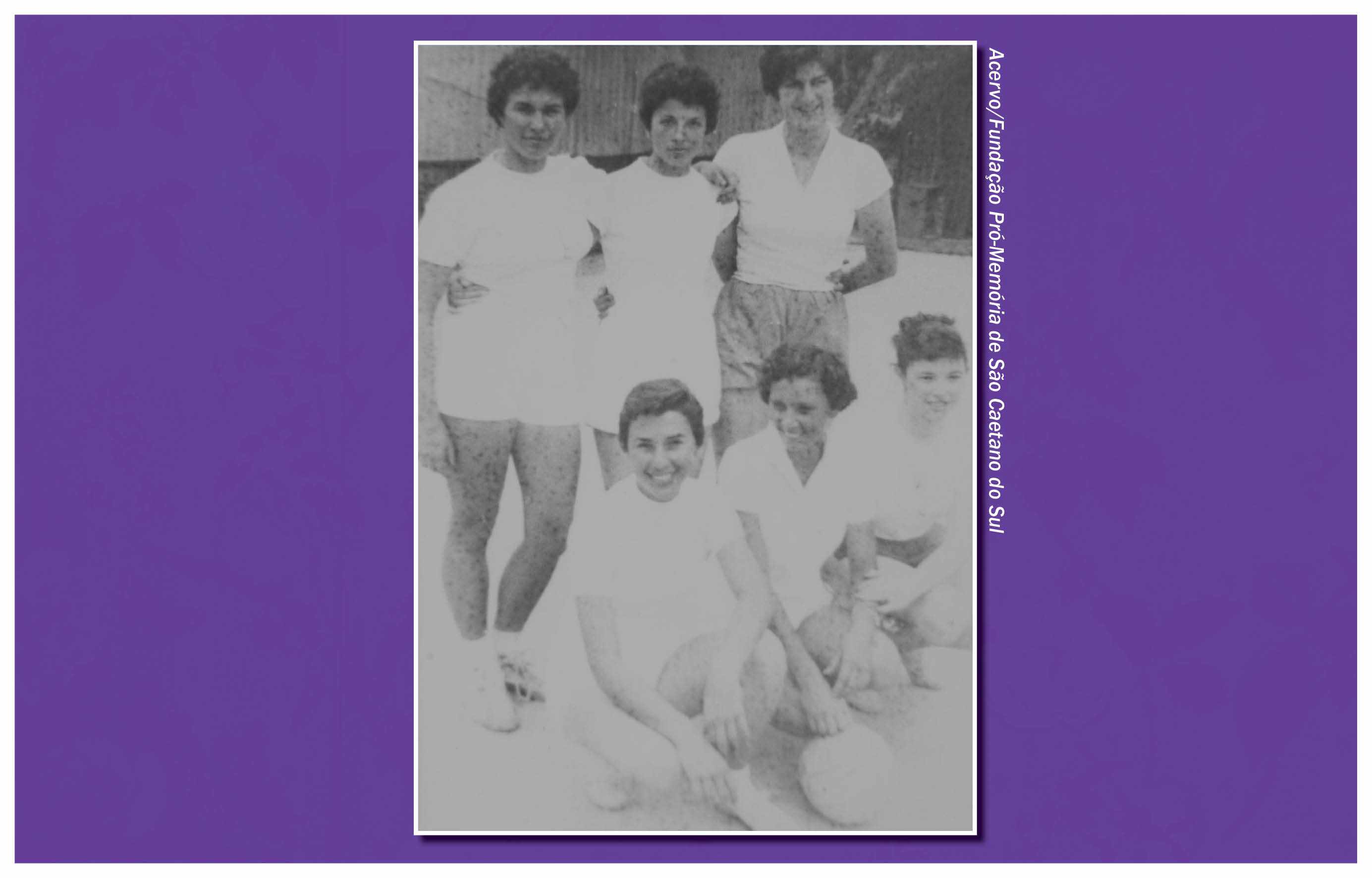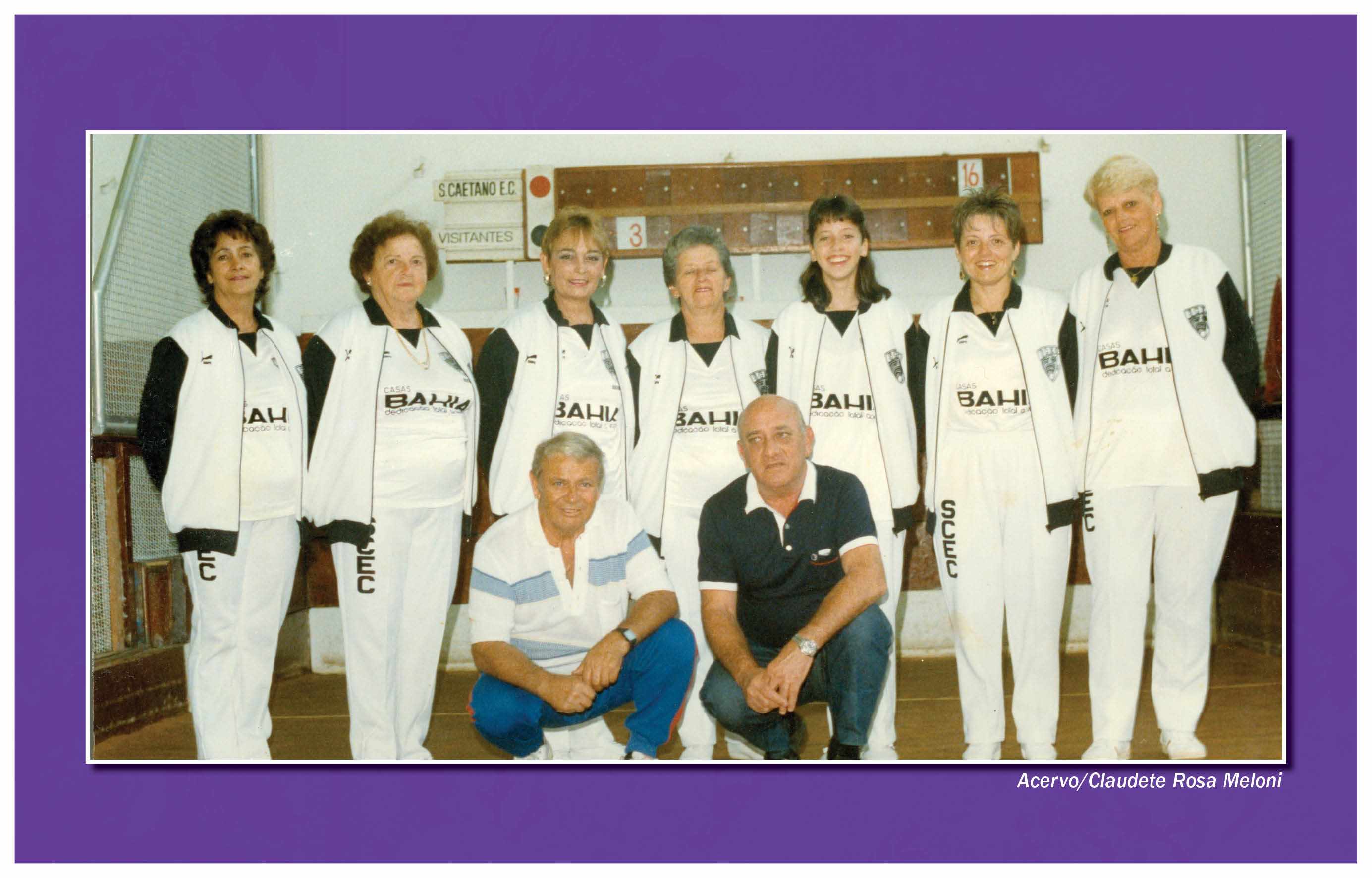 A prática da bocha, no São Caetano Esporte Clube, não ficou restrita aos homens. O primeiro torneio feminino promovido pela agremiação ocorreu em 1979, com a participação de 12 associadas, distribuídas em seis equipes. Nesta foto, da década de 1980, foram identificadas, a partir da esquerda, as jogadoras Adalgisa Spaggiari Martorelli (a segunda, na fileira), Rosa Martinez, Vilma Migliani, Selma Migliani, Izilda João e Maria de Lourdes João. Agachados, Arjonas (à esquerda) e Mário Migliani (técnico)