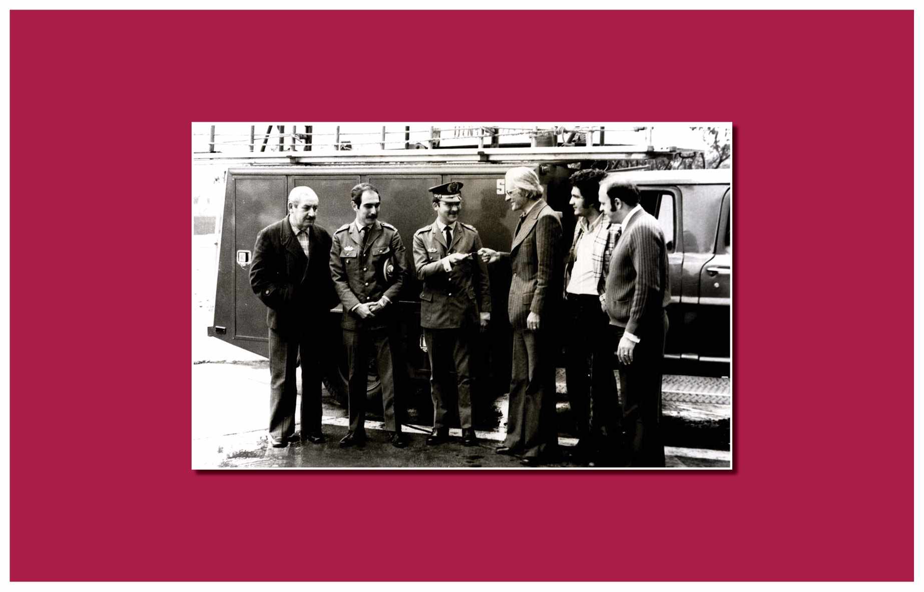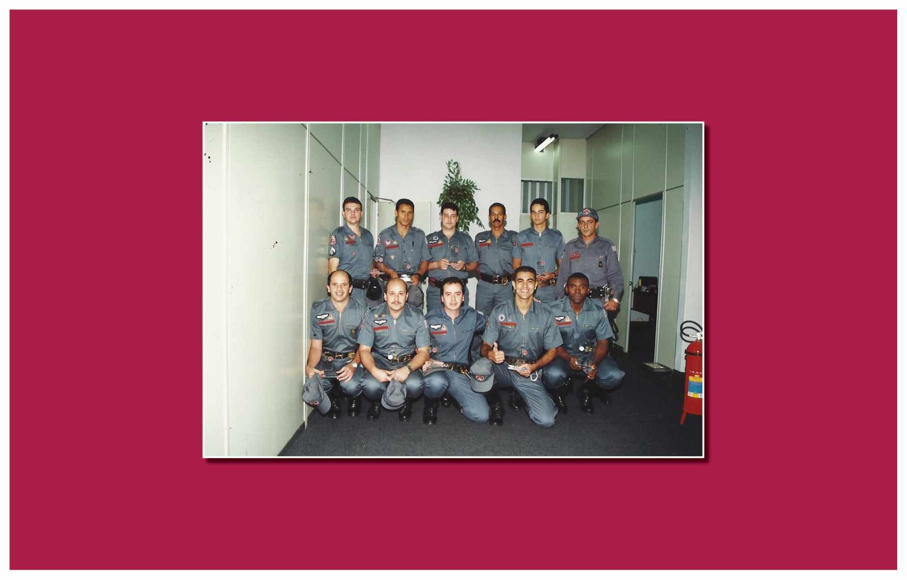 Homenagem, realizada pela Câmara Municipal em 1998, entregue aos bombeiros que se destacaram pelos bons serviços prestados ao município de São Caetano do Sul. Agachados, da esquerda para a direita, vemos: Brilhante, Wlamir, Rubens, Haiz e Bento. Em pé, estão: Ponsio, José Luiz, Paulino, Marsic, Oscar e Cadengue