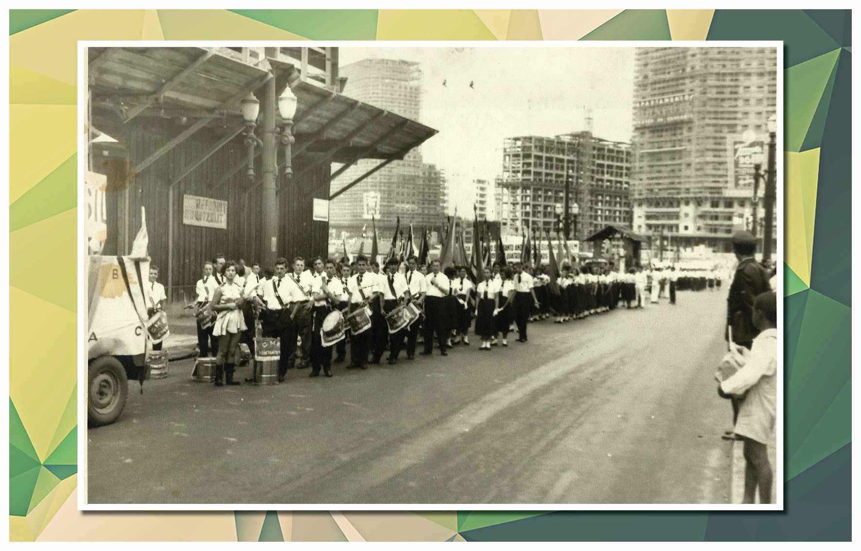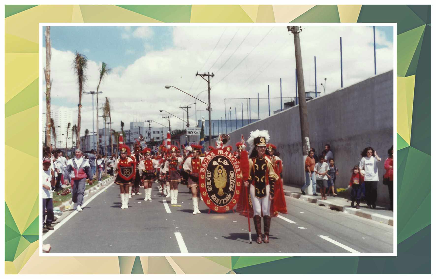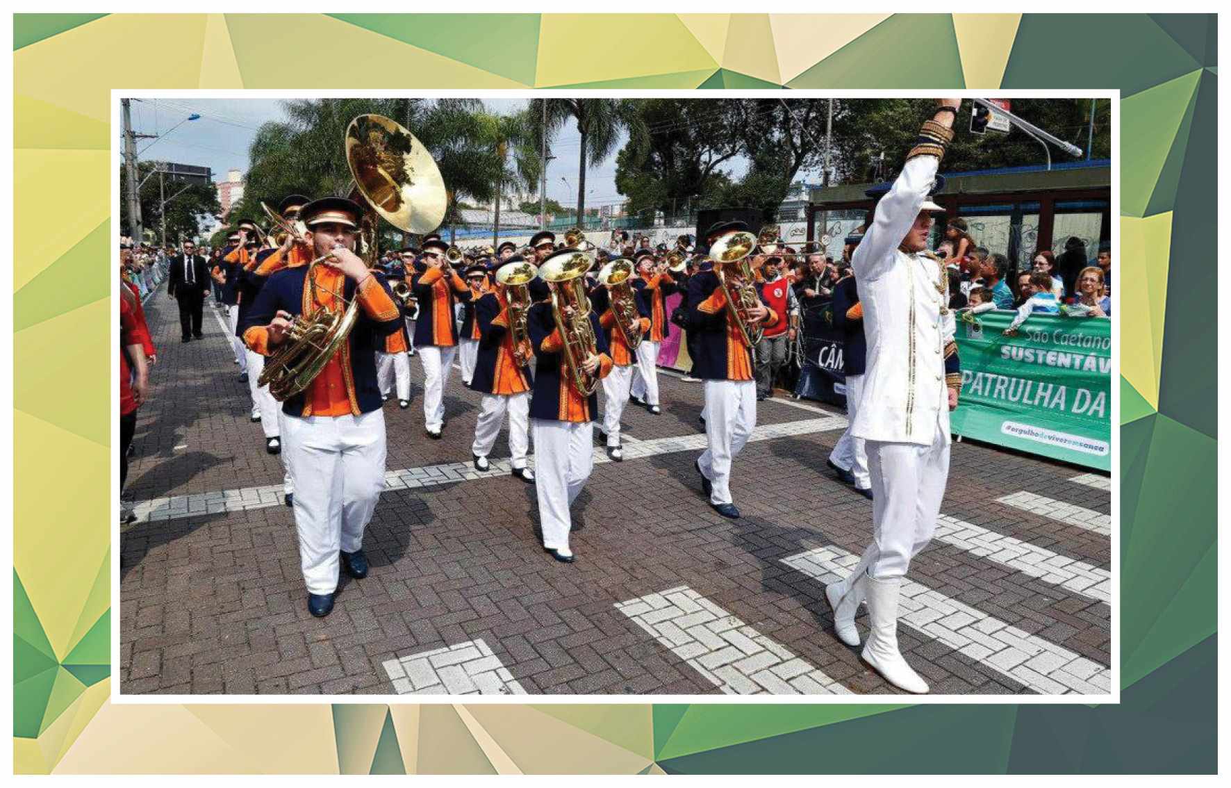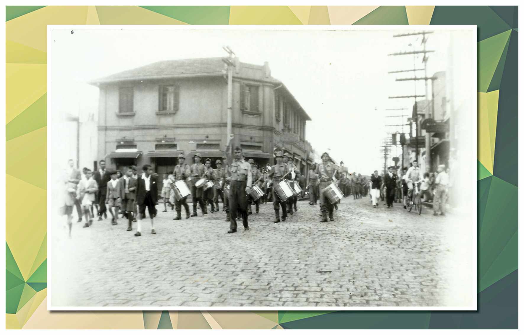 Corporação musical Lyra São Caetano, sob a batuta do maestro Luiz Modena. Vemos os integrantes da banda defronte ao Empório Cuccato, na esquina da Rua João Pessoa e da Avenida Conde Francisco Matarazzo. Foram identificados: Luiz Modena, João Domingos Bombassei, Stoquio Milani, Luiz Bálsamo, Delmestre, Luvigino Neri, Kelo Garbelotto, Sicala, David Cuccato e Américo Terezina. Foto do início da década de 1930