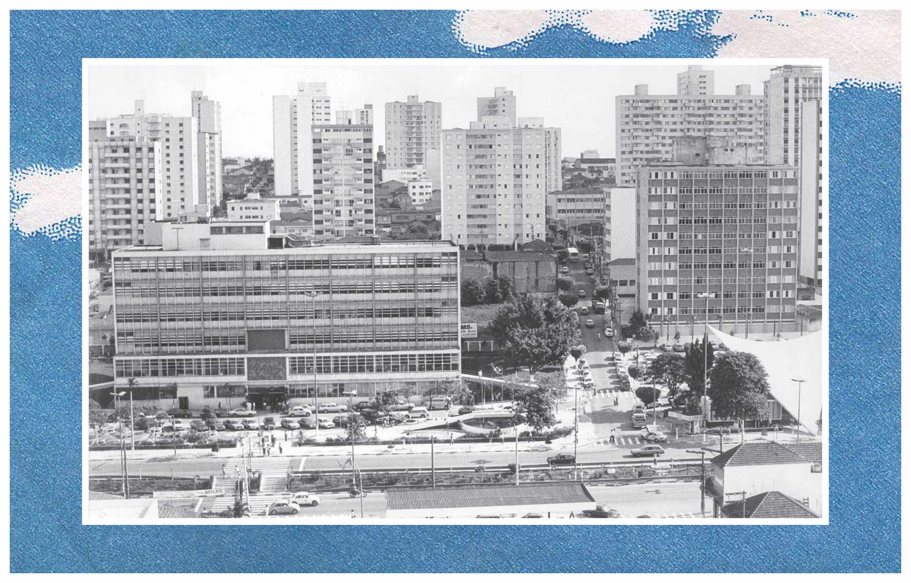 Vista panorâmica da Praça Oswaldo Martins Salgado, na década de 1970 | Acervo/Fundação Pró-Memória de São Caetano do Sul | Saiba mais sobre o Bairro Olímpico em www.fpm.org.br/HistoriaBairros/List