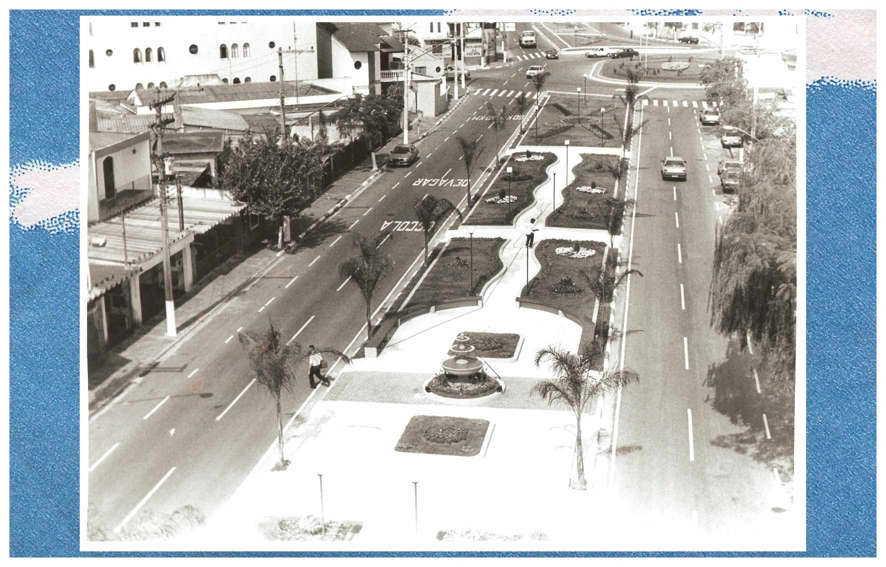 Trecho da Avenida Presidente Kennedy, no Bairro Santa Paula, no final da década de 1990 | Acervo/Fundação Pró-Memória de São Caetano do Sul | Saiba mais sobre o Bairro Santa Paula em www.fpm.org.br/HistoriaBairros/List