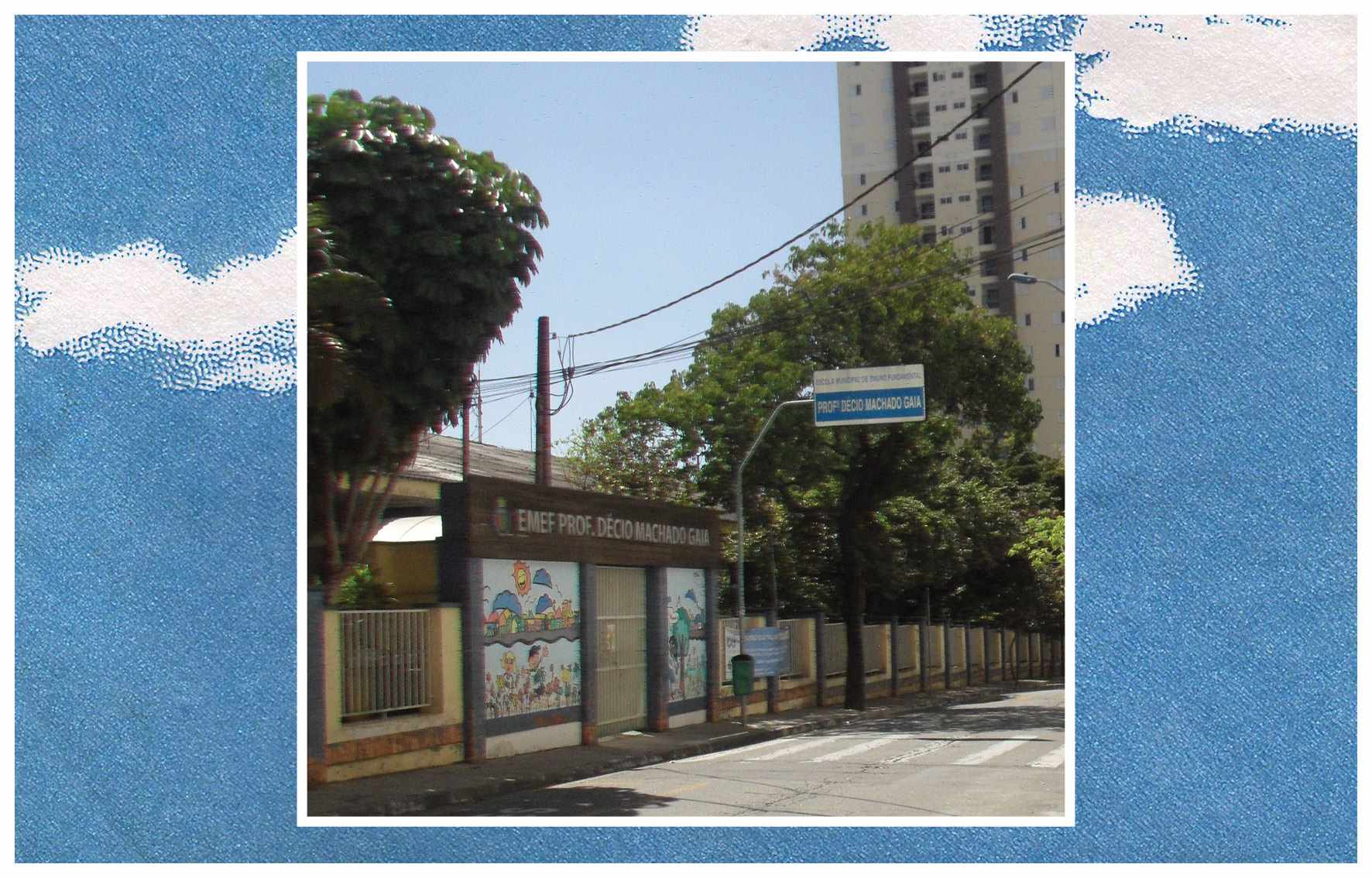 Fachada da EMEF Prof. Décio Machado Gaia | Acervo/Fundação Pró-Memória de São Caetano do Sul | Saiba mais sobre o Bairro Boa Vista em www.fpm.org.br/HistoriaBairros/List