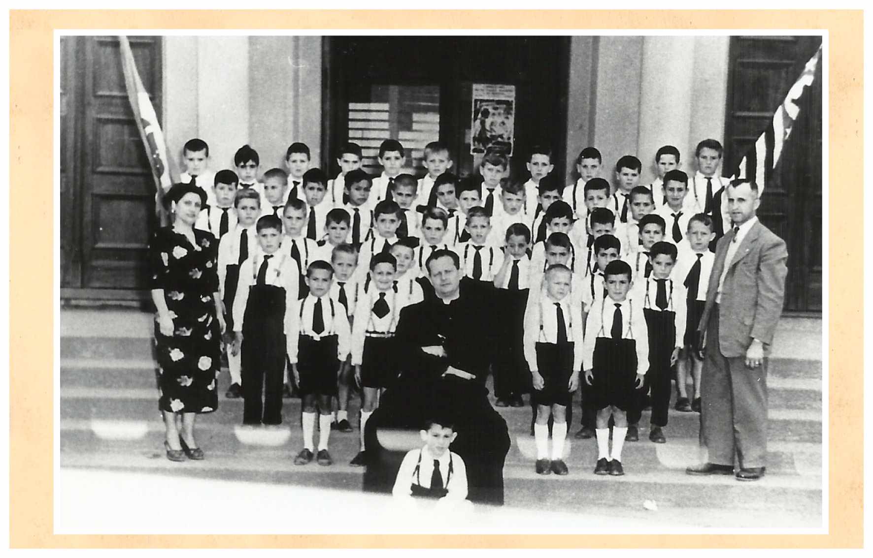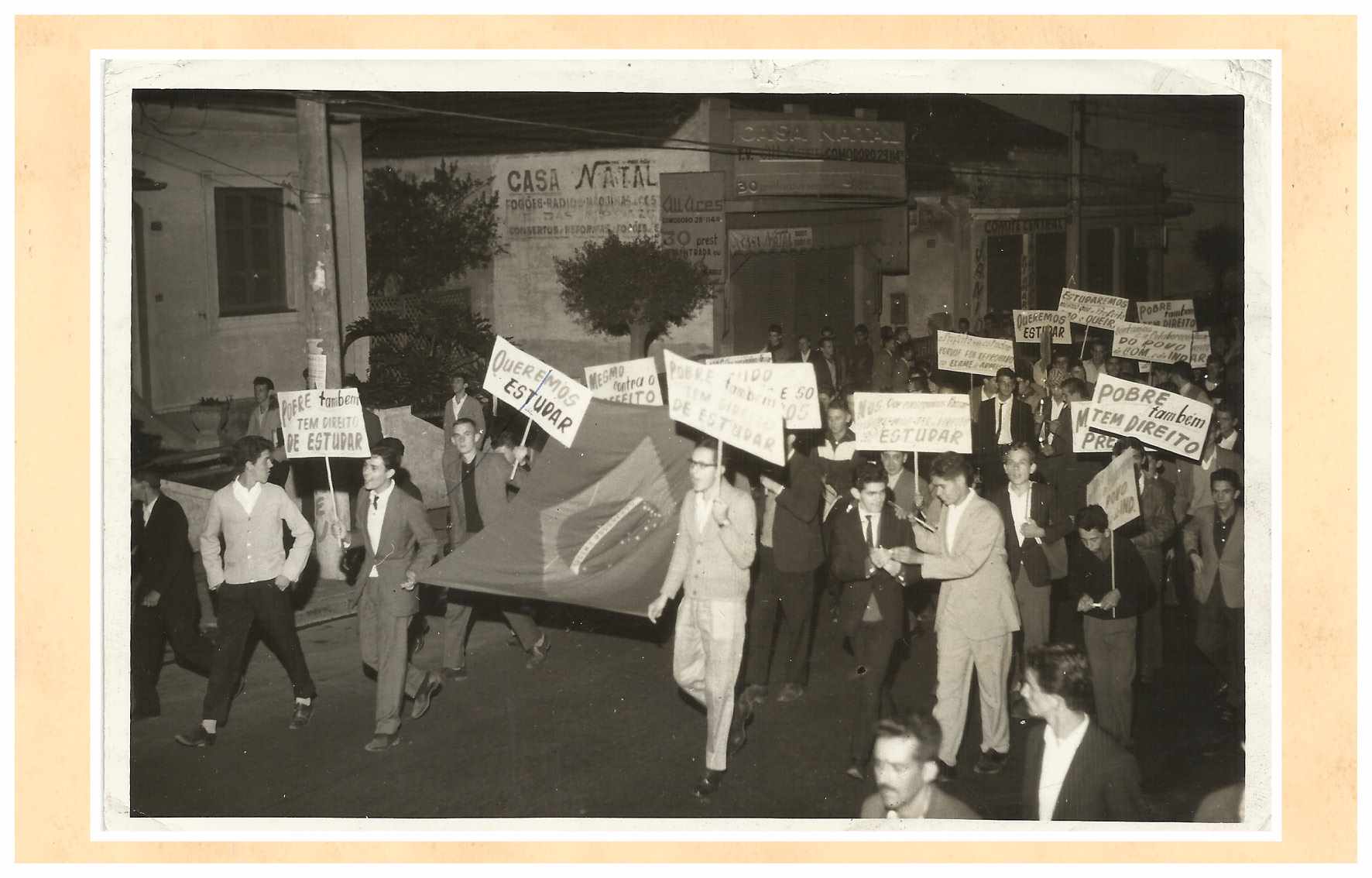 Estudantes participantes do Grêmio Estudantil 28 de Julho, da Escola Estadual Cel. Bonifácio de Carvalho, em 1958. Na foto foram identificados: Norival José Oliva, Laercio Mombelli, Enio Campoi, Salvador Kalmar, Fuad Sayar, Sídney Cavassani, Edilson Salgelli, Paulo Gonçalves, Ramis Sayar e Daniel Fiorotti
