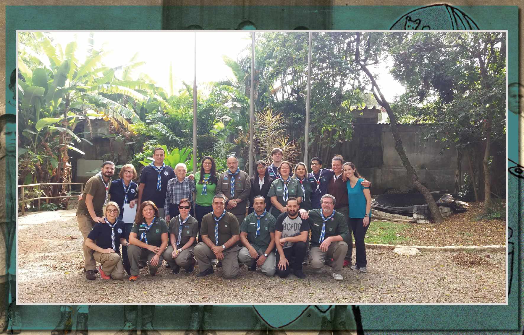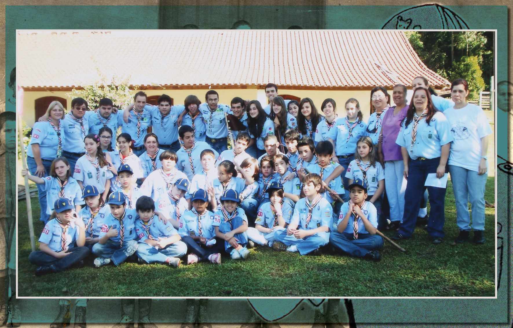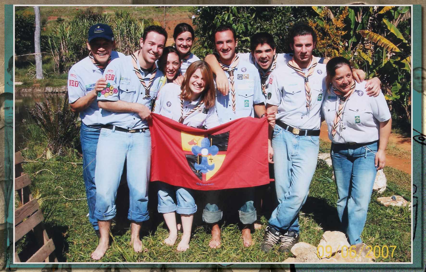 Integrantes do Grupo Escoteiro São Caetano, em foto de 9 de junho de 2007. A partir da esquerda, vemos: chefe Toshio, Gabriel Joia, Patrícia Moura, Patrícia Puccia, Laura, Renan, Jean, Lucas e chefe Sandra - Acervo/Sandra C. Monteiro