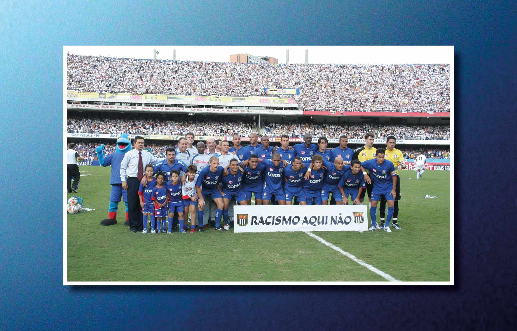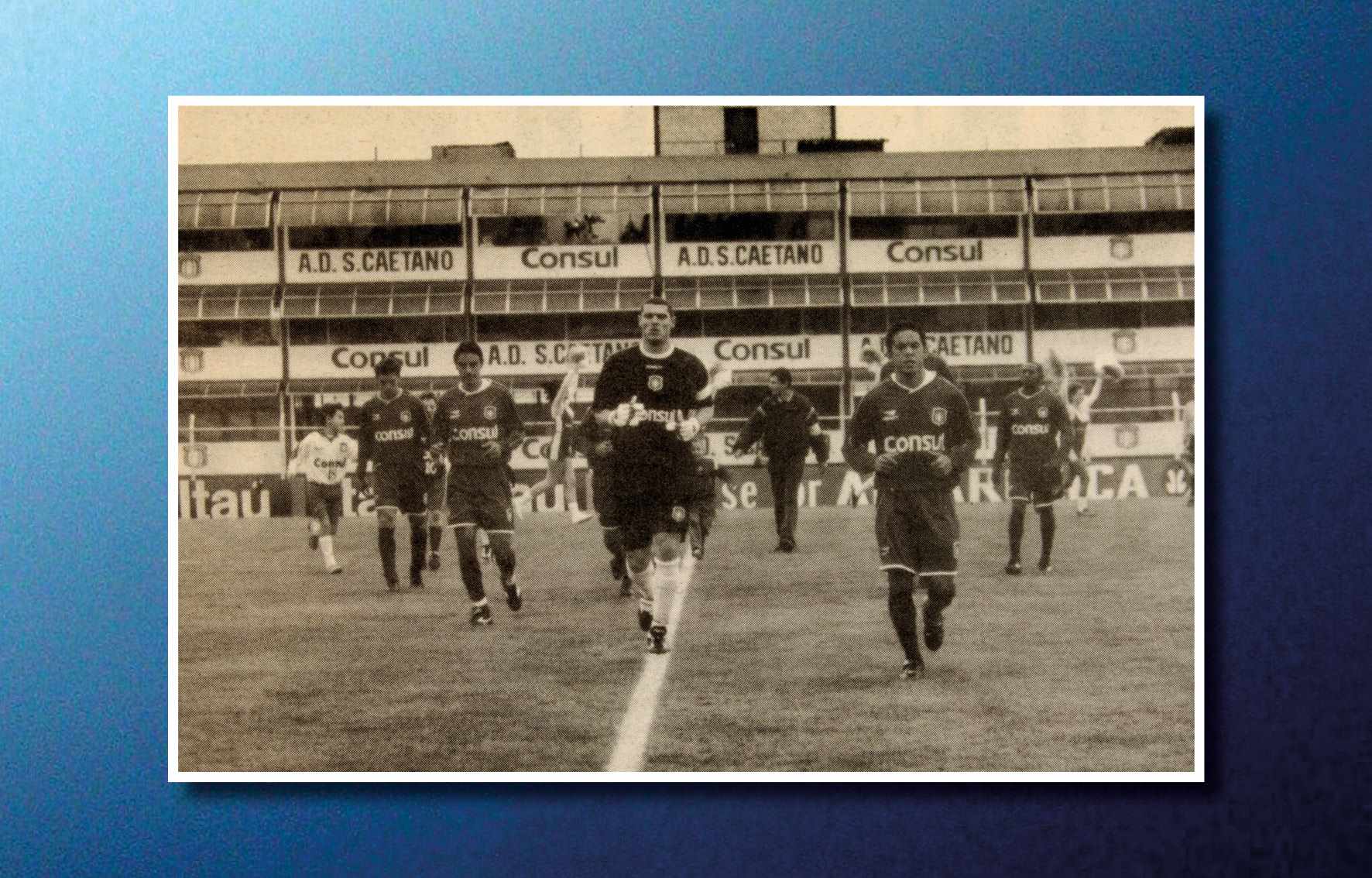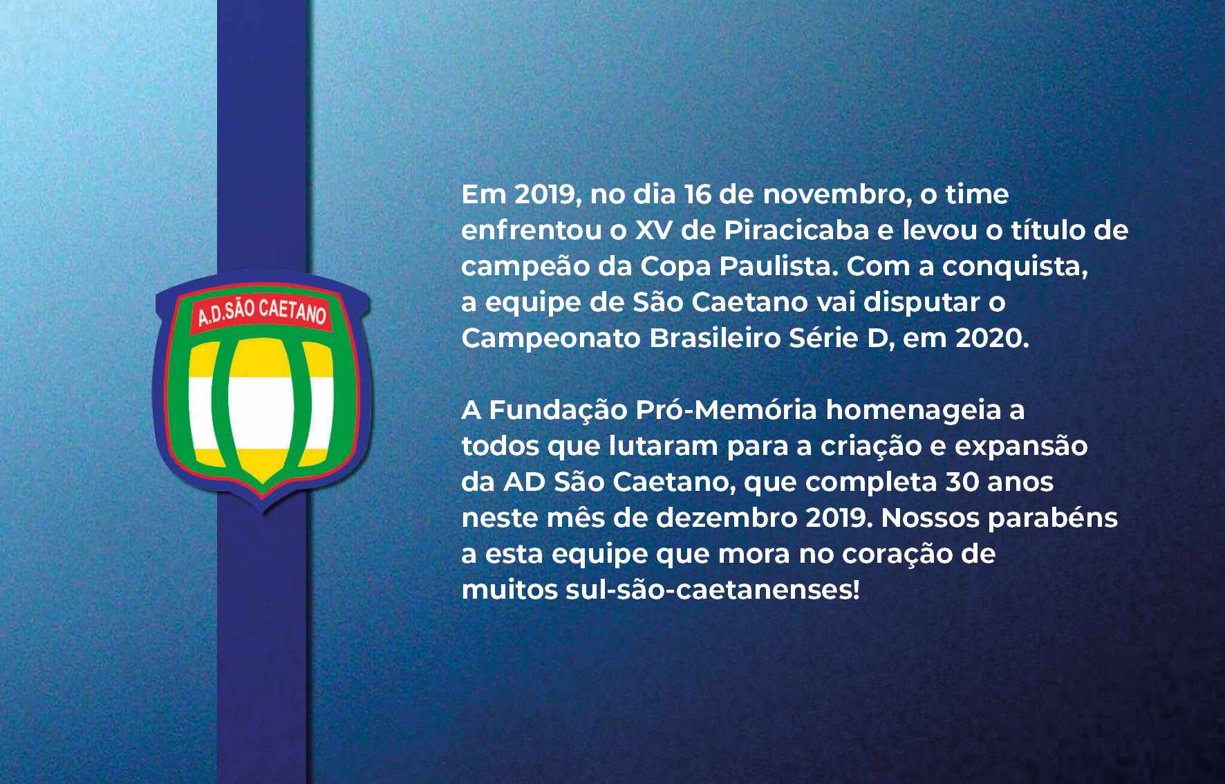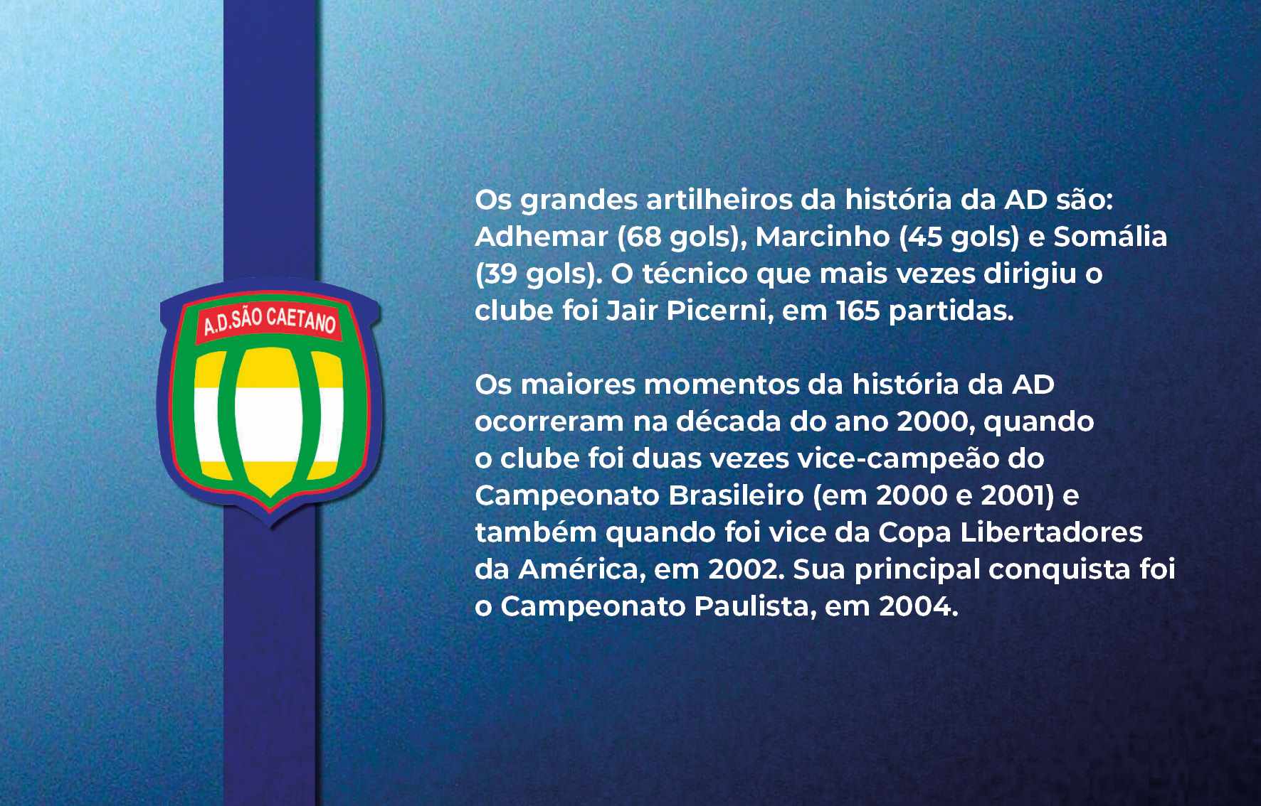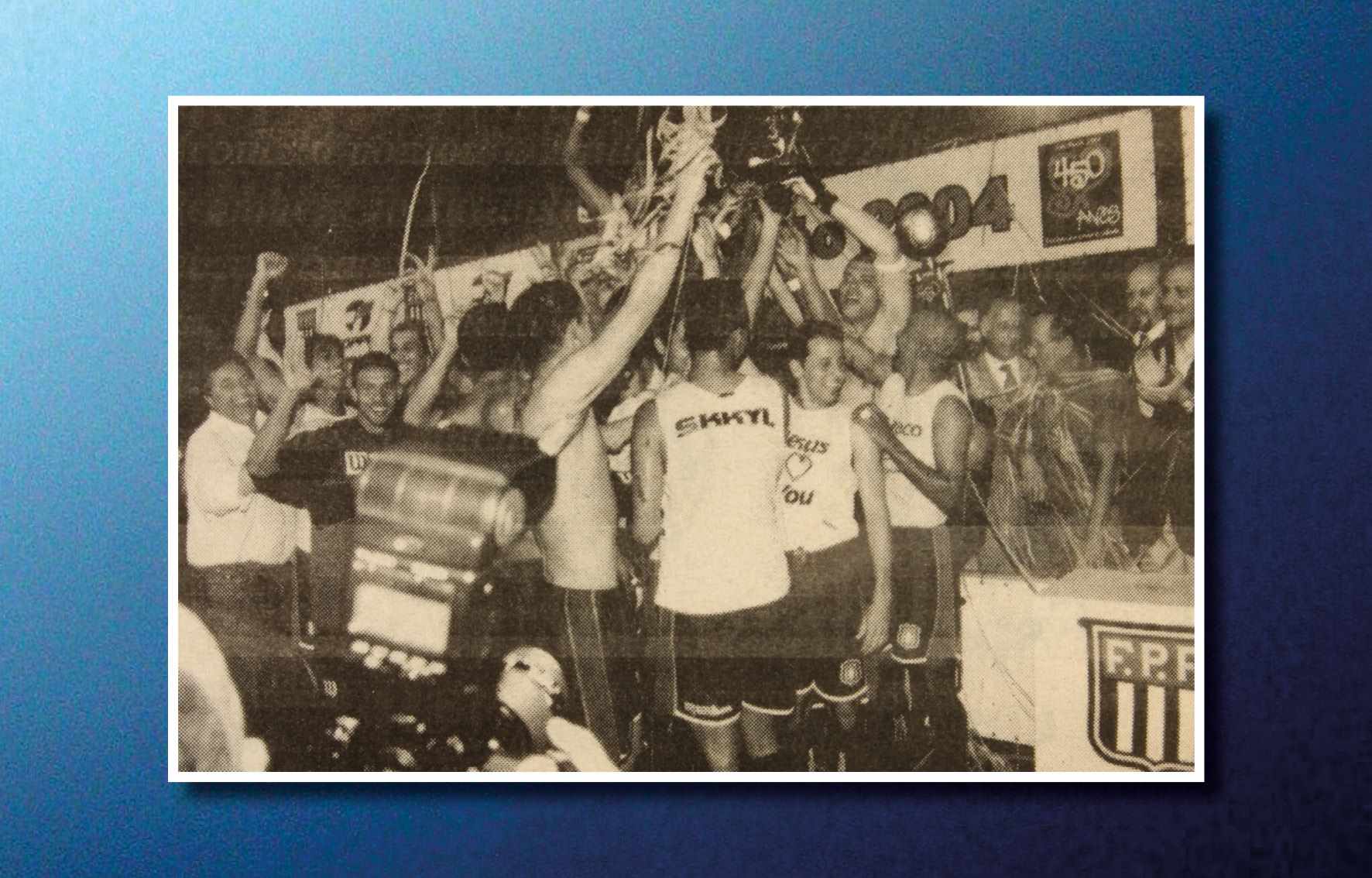 Jogadores da AD São Caetano festejando o título ganho no Campeonato Paulista (Paulistão), em 2004, quando derrotou o Paulista no primeiro e segundo jogos. O técnico era Muricy Ramalho e os jogadores das finais foram: Silvio Luiz, Tiago, Dininho, Serginho, Triguinho, Marcelo Mattos, Mineiro, Gilberto, Marcinho, Fabrício Carvalho e Euller Reprodução/ Jornal Sangue Azul (Acervo/FPMSCS)