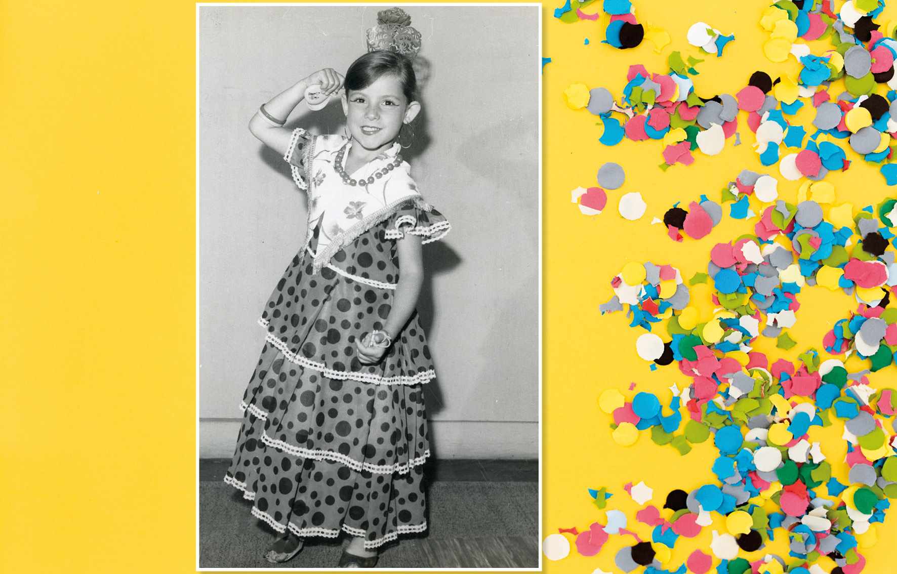 A garotinha fantasiada de espanhola foi participante do concurso de fantasias no Clube Águias, no Bairro Nova Gerty, no ano de 1980 Acervo/FPMSCS