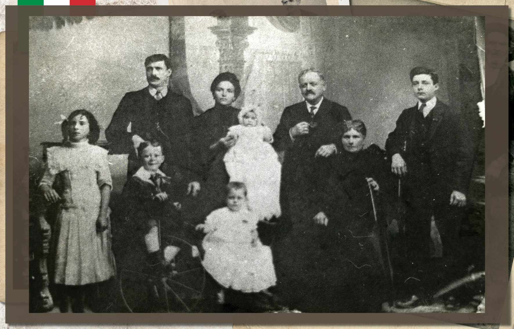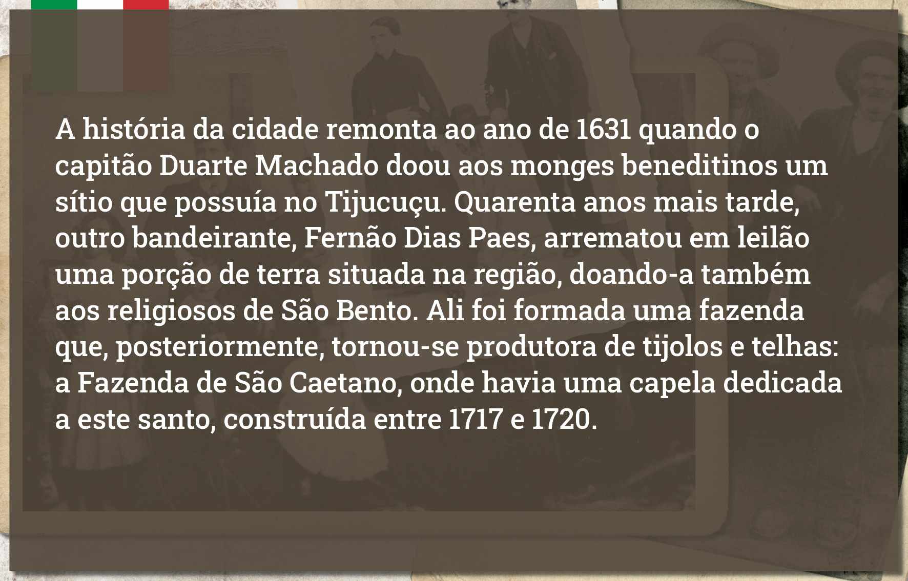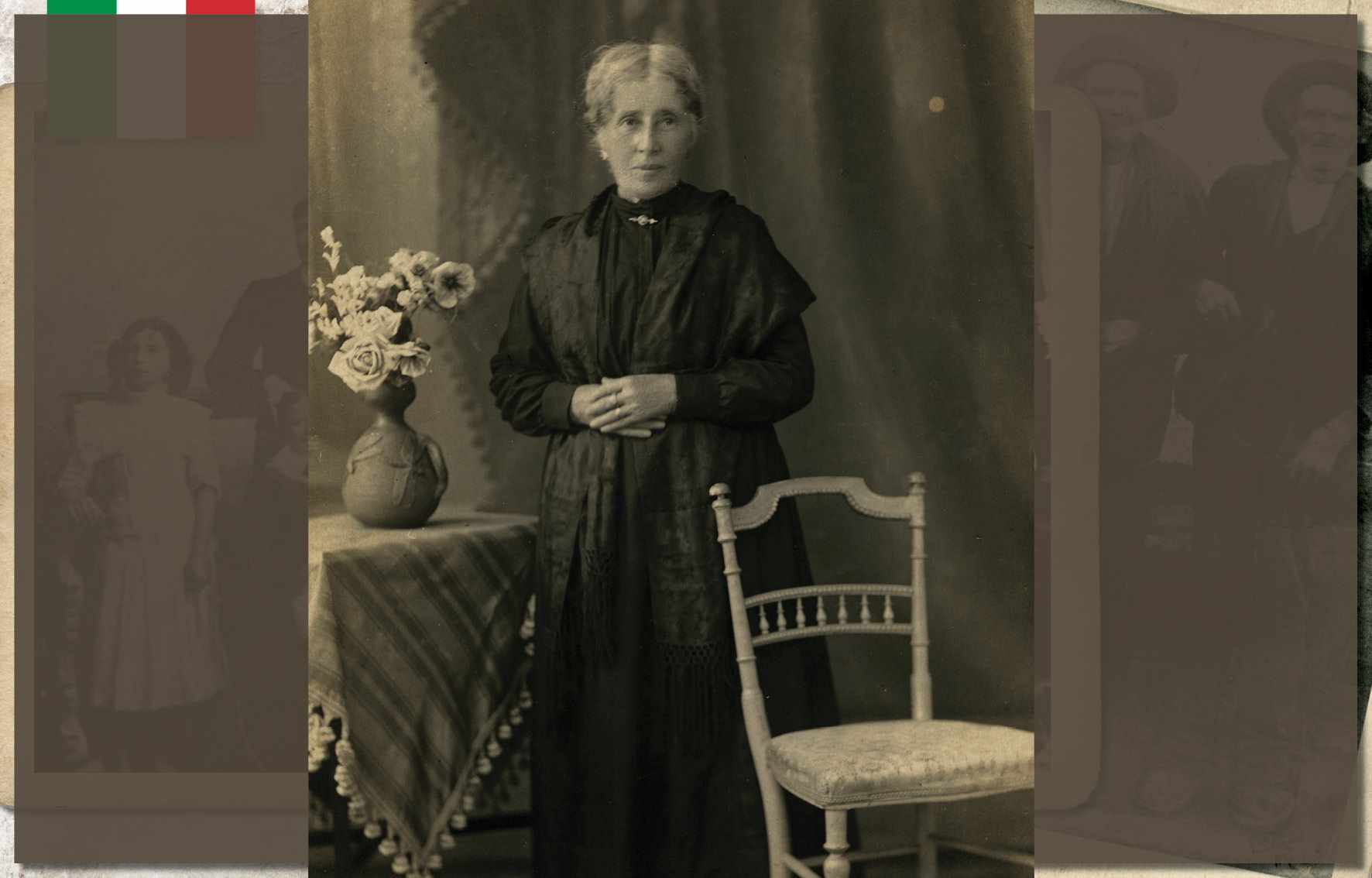 Augusta Dalcin Botteon, em foto de 1908. Nascida no ano de 1882, em São Caetano, era filha de Giacomo Dalcin, colono italiano que aqui chegou em 1877, na primeira leva de imigrantes. Ainda jovem, com seu irmão, transportava lenha em uma carroça. Casou-se com Antônio Botteon, em 1904, com quem teve nove filhos. Faleceu em 1977, aos 95 anos de idade Acervo/FPMSCS