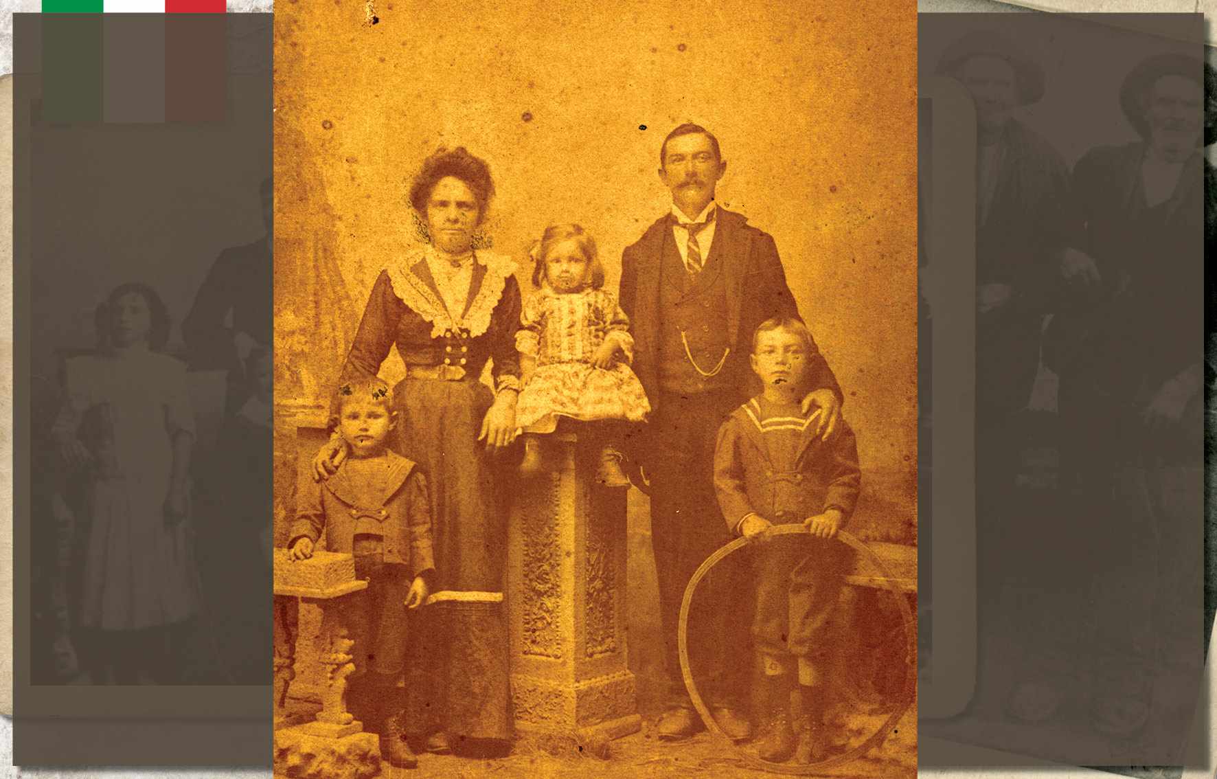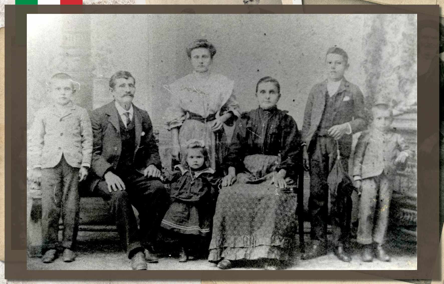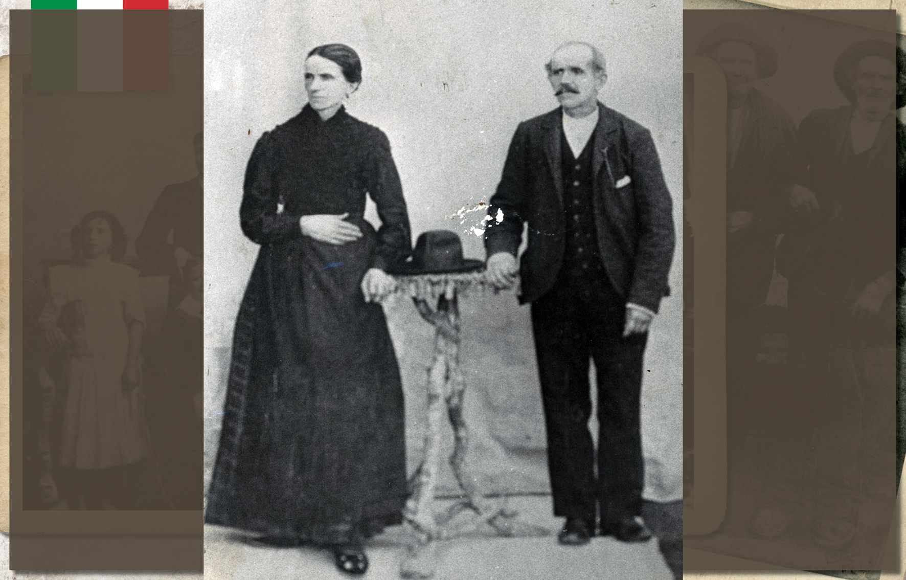 Augusta Dalcin Botteon, em foto de 1908. Nascida no ano de 1882, em São Caetano, era filha de Giacomo Dalcin, colono italiano que aqui chegou em 1877, na primeira leva de imigrantes. Ainda jovem, com seu irmão, transportava lenha em uma carroça. Casou-se com Antônio Botteon, em 1904, com quem teve nove filhos. Faleceu em 1977, aos 95 anos de idade Acervo/FPMSCS
