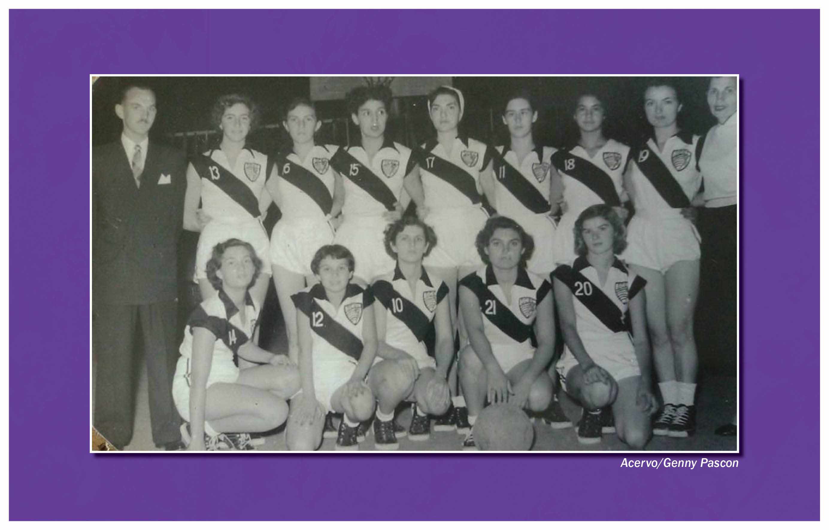 A prática da bocha, no São Caetano Esporte Clube, não ficou restrita aos homens. O primeiro torneio feminino promovido pela agremiação ocorreu em 1979, com a participação de 12 associadas, distribuídas em seis equipes. Nesta foto, da década de 1980, foram identificadas, a partir da esquerda, as jogadoras Adalgisa Spaggiari Martorelli (a segunda, na fileira), Rosa Martinez, Vilma Migliani, Selma Migliani, Izilda João e Maria de Lourdes João. Agachados, Arjonas (à esquerda) e Mário Migliani (técnico)