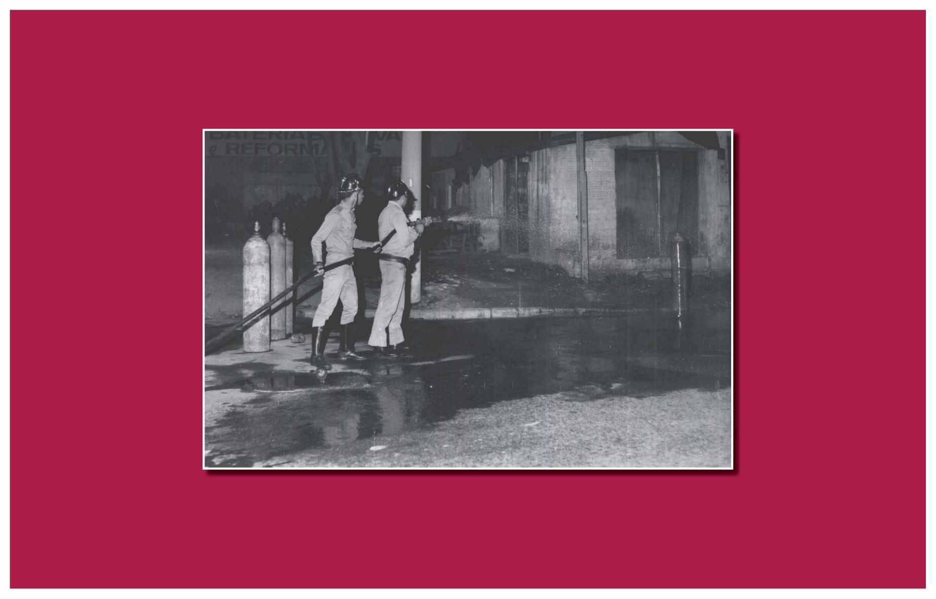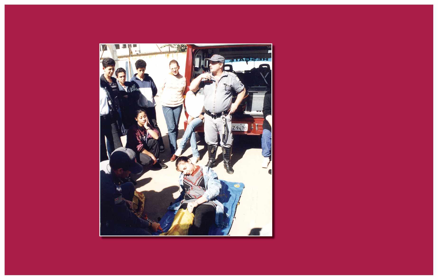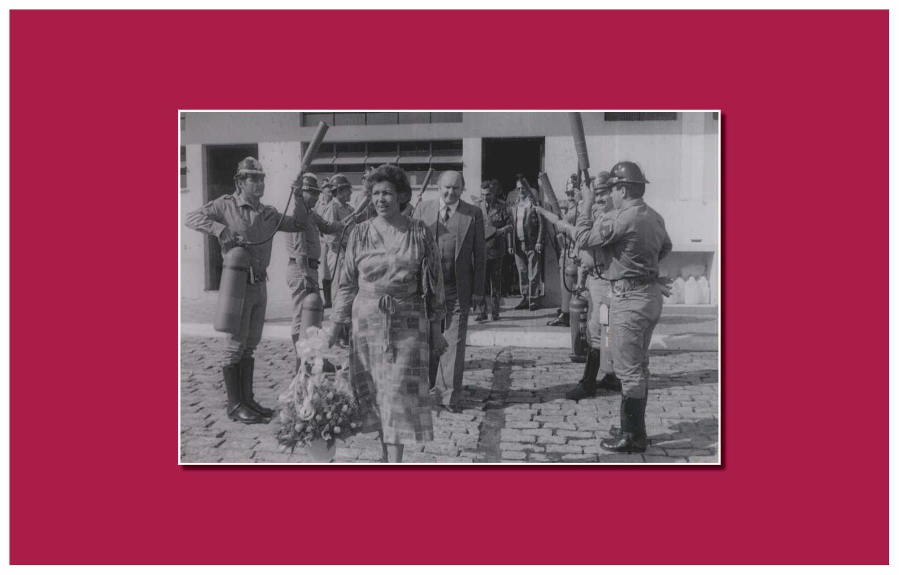 Homenagem, realizada pela Câmara Municipal em 1998, entregue aos bombeiros que se destacaram pelos bons serviços prestados ao município de São Caetano do Sul. Agachados, da esquerda para a direita, vemos: Brilhante, Wlamir, Rubens, Haiz e Bento. Em pé, estão: Ponsio, José Luiz, Paulino, Marsic, Oscar e Cadengue